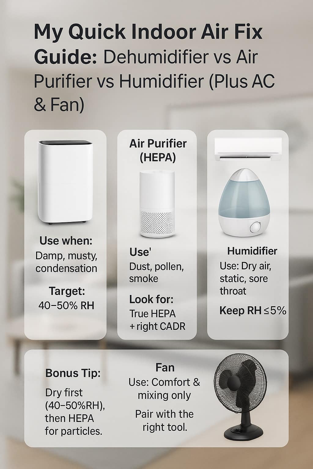 My No-Nonsense Guide: Dehumidifier vs Air Purifier vs Humidifier (Plus AC, Fan & Dry Mode)