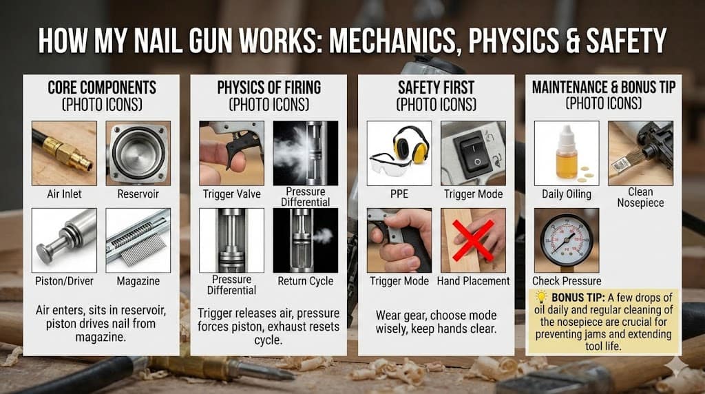 Understanding how my nail gun works has turned me from a frustrated DIYer into a confident builder. It’s all about the balance of air pressure, mechanical maintenance, and respecting the power of the tool. When I take care of my gear, it takes care of me, and the results speak for themselves in every project I finish.