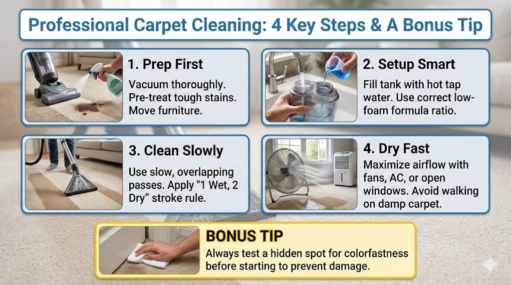 Deep cleaning your own carpets is one of the most rewarding DIY tasks you can do. My journey from “muddy messes” to “professional finishes” taught me that success is all about the details. If you vacuum thoroughly, don’t over-saturate, and focus on drying, you’ll get results that look (and smell) amazing.