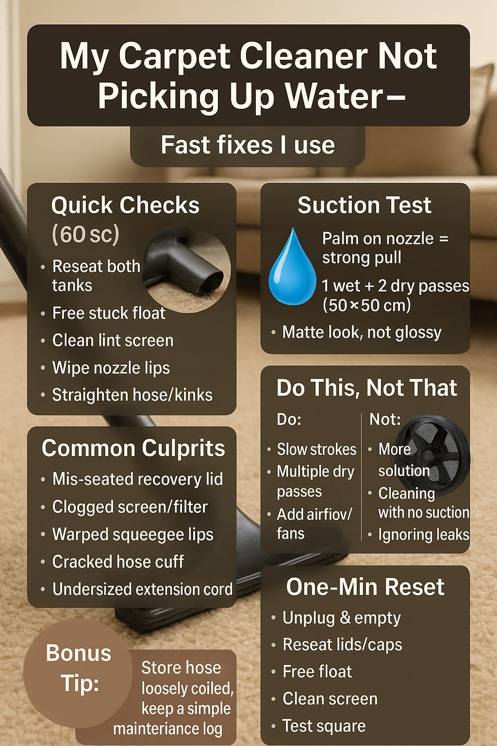 🔍 My Quick Checks When the Carpet Cleaner Won’t Pick Up Water