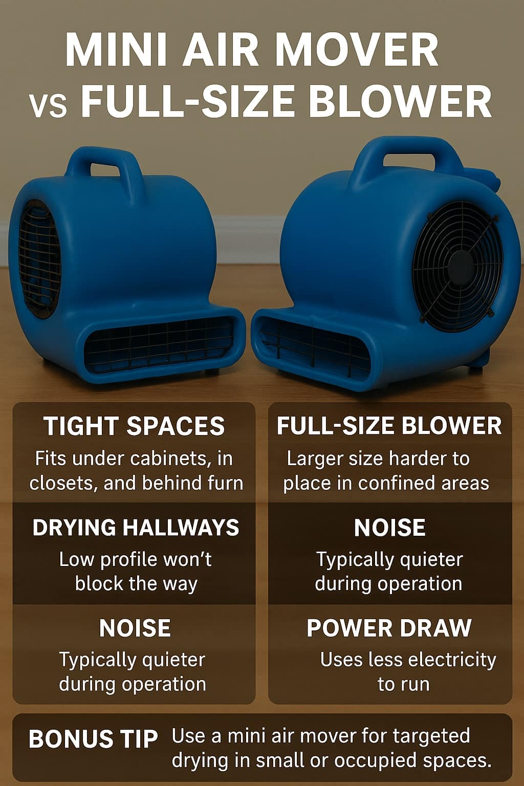Mini Air Mover vs Full-Size Blower Quick Facts