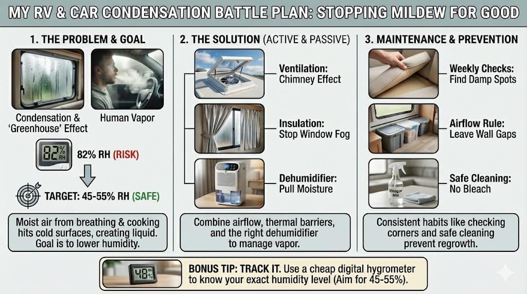 My goal shifted from just “surviving” the dampness to creating an evergreen strategy. I wanted a plan that worked whether I was parked in the foggy Pacific Northwest or a humid coastal town. I stopped being reactive and started being clinical about how I managed every single drop of water in my small living space.